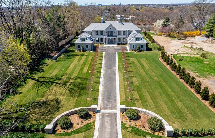 It was designed by famend Cardello Architects and options roughly 7,718 sq. toes of residing house with 6 bedrooms, 8 full and a pair of half bogs, lobby with staircase, residing & eating rooms, kitchen, household room, workplace, coated porch, completed attic, decrease degree rec room with moist bar, connected 2-car storage, indifferent 2-car storage with studio house and extra.